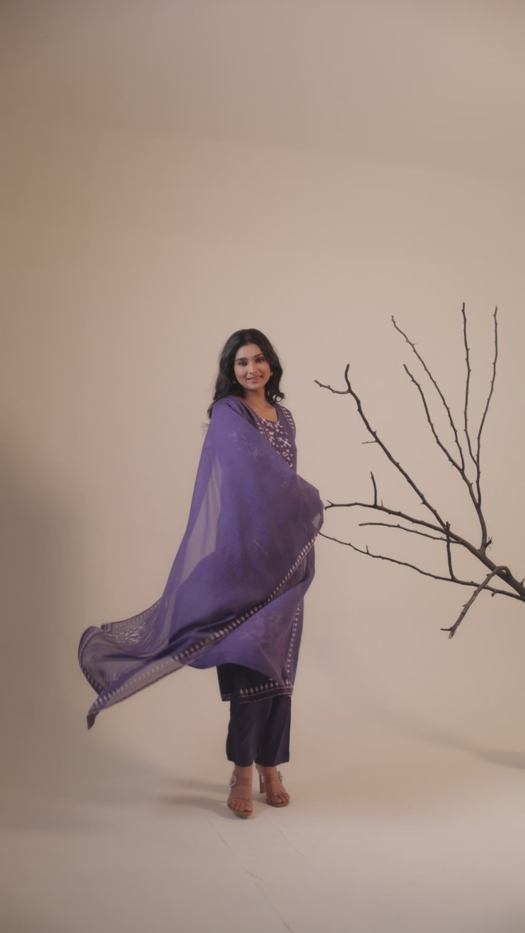 Aarya Pure Mul Chanderi Embroidered Kurta Set with Dupatta - Purple