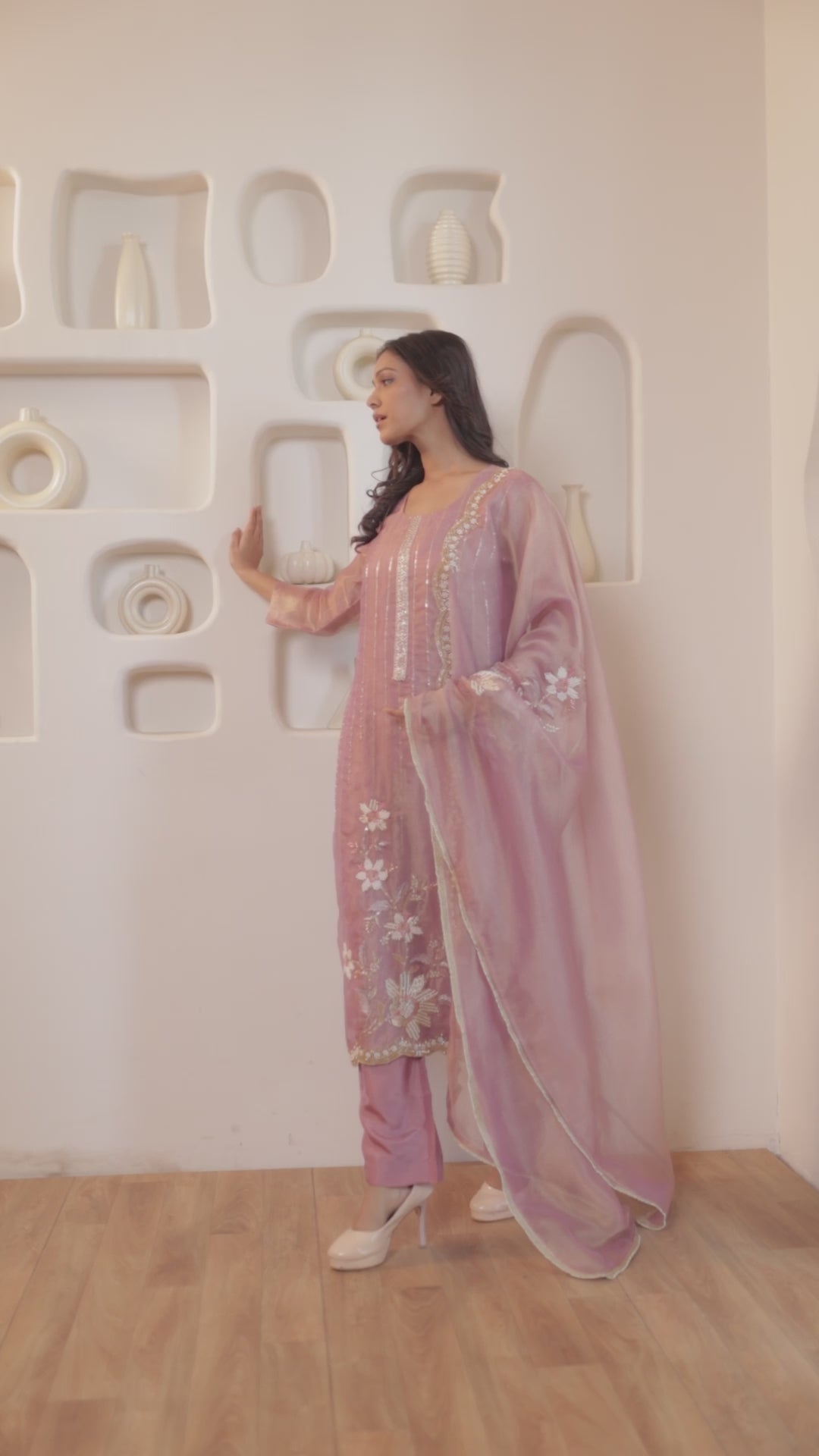 Alezia Tissue Embroidered Kurta Set with Dupatta
