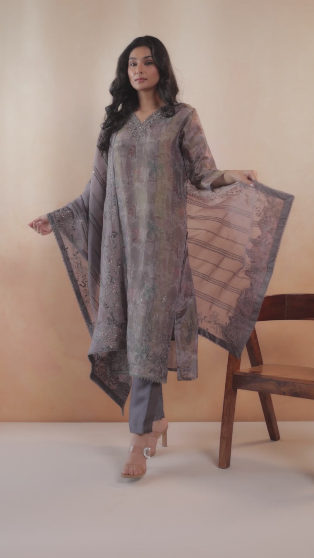 Delicate yet striking, Siyana is a sophisticated tissue ensemble featuring intricate handwork on the neckline and dori-sequins embroidery gracefully embellishing the hem. The pure organza dupatta, adorned with detailed embroidery, adds a layer of opulence, making it a perfect choice for festive soirées, elegant gatherings, and intimate celebrations. Paired with fluid upada silk bottoms, this ensemble exudes grace and timeless charm.